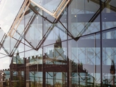 Ved Rådhuspladsen har Industriens hus ligget i mere end hundrede år, siden 1979 i en bygning af arkitekt Erik Møller, karakteriseret af en mørk teglstensfacade og store lysreklamer for foreningens medlemmer. Tegnestuen Transform har tegnet den omfattende ombygning af Erik Møllers hus, som blev indviet i 2013. I den nye bygning har man valgt at bryde den tunge teglfacade ned, og erstatte den med en glasfacade, monteret i spinkle rombeformede metalrammer. I stedet for fuldstændig at fjerne hele det eksisterende hus, har man lavet en stripning af bygningens forreste del, hvor alt undtagen betonkonstruktionen er pillet ud. Derefter er søjlerne i de nederste etager blevet forstærket og der er bygget to til tre etager ekstra på, så huset har en samlet højde på otte etager. Ved Rådhuspladsen er den indre facade trukket tilbage , så der opstår en høj foyer ved bygningens hovedindgang. På bygningens bagside ind mod Tivoli har man adderet en bygningsfløj, med terasseanlæg på tagene, som trapper ned fra 8 sal til 2 sals højde. Den nye facadebestår af to lag. En indre isoleret konstruktion med store vinduespartier og den ydre glasskærm som, beskytter mod vind og vejr og skærmer for støj fra gaderne. Rammerne i facaden har indlagt LED-belysning, som kan programmeres til at vise forskellige farver og mønstre.