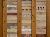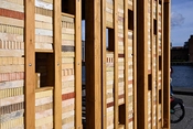 Overskårne perforerede mursten stables løst oven på hinanden i vægelementerne, holdt sammen af en træramme – og dimensionerne på stenene har dermed givet udgangspunkt for hele pavillonens design.