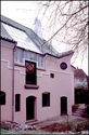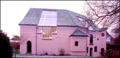 Såvel sadeltaget som sekvensen af hovedrum krummer sig svagt om det cylindriske indgangsparti. Bortset fra to mindre vinduespar er alle vinduer af forskellig størrelse.