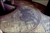Motivet for ankomstrummets teglgulv er inspirationens vingede Pegasus, indfattet med et kobberbånd, og omkranset af en teglbort af stiliserede hestehoveder.