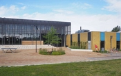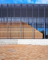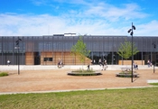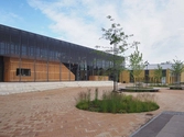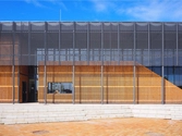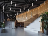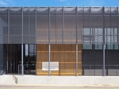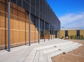 Med inspiration fra åleruser og fiskekasser fremstår foyerområdet som et overdækket byrum indrammet af solafskærmende strækmetal og træbeklædte opholdszone. Der er arbejdet med nedskalering og tilpasning til omgivelserne, så den store hal syner lavere, fordi den er omgivet af mindre bygningskroppe hele vejen rundt og de lange facader opdeles i mindre volumener. Lodrette lister binder visuelt hele komplekset sammen med foyerens træpartier.