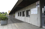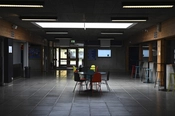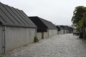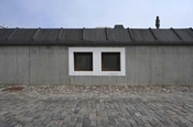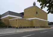 Hallen underordner sig størrelsesmæssigt naboskabet med den gamle by.