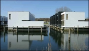 Kanalhusene er det tætteste man kan komme på en husbåd uden at miste fast grund under fødderne. Gulvet er 180 cm. over daglig vande for at sikre mod oversvømmelser.
