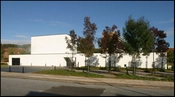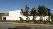 Kapelsalen hæver sig over det flade bygningsanlæg. De enkle, kubiske former skaber en neutral ramme om funktionen.