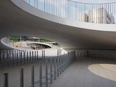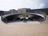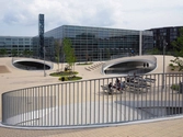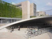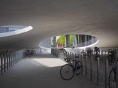 Ved støbningen af bakkehvælvene har man for anvendt en inspændt skalkonstruktion, hvilket muliggjorde at man kunne undgå søjler i rummene under bakkerne. Store buede indgange samt runde udskæringer i dækket trækker dagslys ind i cykelparkeringen. Der er siddepladser på bakkerne, som i et amfiteater. Dalstrøgene mellem bakkerne giver naturlige ruter mellem de forskellige fakultetsbygninger, og analyser af flowlinjer har været med til at bestemme placeringen af cykelbakkerne og andre elementer i pladsens topografi.