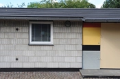 Karen og Ebbe Clemmensens hus er et af de mere eksperimenterende i kvarteret og fremstår med en kunstnerisk nerve i sit formsprog og leg med helhed, detaljer og farver. Den meget uformelle holdning til arkitekturen kommer til udtryk ved en ærlig og enkel sammenstilling af rustikke, beskedne og prisbillige materialer. Husets uortodokse arkitektur er en bevidst modreaktion mod samtidens mere formelle arkitekturopfattelse med påvirkninger fra international modernisme.