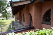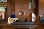 Såvel indvendigt som udvendigt præges kirken af sine karakteristiske buede vinduesgrupper, som brydes af søjler af røde mursten. Indvendigt falder det hvide og træfarvede loft mod ydermurene, hvor det møder de røde murstensmure, der er med til at give lokalet en varm og indbydende stemning.