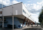 Det var arkitekten Hans Hansen, som stod bag det funktionalistiske hovedværk. Med den for datidens forhold dristige betonkonstruktion. Interiøret bød på specialdesignede lamper af Poul Henningsen og et stort vægmaleri af Sikker Hansen.