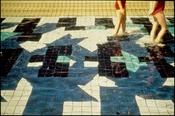 En del af den kunstneriske udsmykning er dekorative kakler i bunden af et udendørs soppebassin.