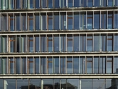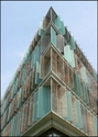 Udenpå husets glasfacade er anbragt et system af kulørte glas- og træskodder, der giver huset en bestandigt foranderlig facade. Skodderne kan vendes op til 90 grader og styrer både lysindfald og temparatur.
