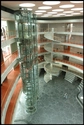 Atriet har et perforeret loft som nøje regulerer dagslyset. På etagerne er anvendt en støbt, rød gulvbelægning, der giver et varmt genskær.