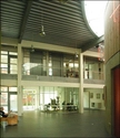 Den meget enkle plan, hvor funktionerne gruppere sig omkring rotunden, der er placeret centralt på det indendørs torv. Bygningen rummer 2850 m2 og har kostet 32 mio. kr. at opføre.
