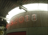 Indgangen til biblioteket er placeret i en limegrøn væg til venstre for rotunden.