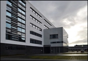 Bygningen er disponeret som to lange 6 etagers blokke forbundet med 2 store transparente gangbroer. De to bygningskroppe ligger på det nedlagte Ålborg Værft's grund indeholdende en gammel tørdok, der nu er åbnet op til ud mod fjorden og opfyldt med vand.