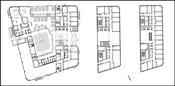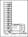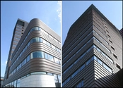 Den nederste del af bygningen er fire etage høj med en base af lys granit. I stueetagen er indrettet butikker og kantine.