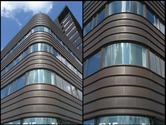 Beklædningen er udført som præfabrikerede kobberkassetter med en størrelse på 50 x 150 cm. Disse forventes at patinere hurtigt grundet beliggenheden nær Øresund.