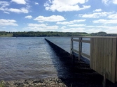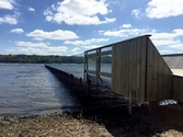 Den 85 meter lange badebro er tænkt som skulpturelt objekt, beklædt med klimabestandig spejlfolie, der ophæver grænsen imellem vand og objekt. Fra visse vinkler ‘forsvinder’ broen stort set. Den bliver ét med fjorden og underlægger sig naturen. På den indvendige side er anlægget beklædt med træ. Træbeklædningen danner møbler og flader til ophold og aktivitet.