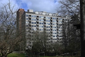 Det 12-etagers kollegium Solbakken mellem Vestre Kirkegård og Vigerslev Allé blev tegnet af arkitekterne Ole Buhl og Harald Petersen og blev bygget i årene 1954-56. De to arkitekter arbejdede i samme periode med højhusene på Bellahøj.