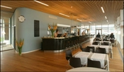 Den offentligt tilgængelige restaurant har mulighed for udeservering og har udsyn over hele lystbådehavnen.