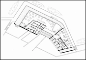 Bygningen er ca. 1000 m2 stor og har nærmest form som en boomerang.
