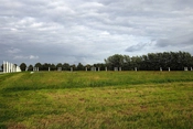 Midt i Jelling by rejser de to græsklædte høje sig, og mellem højene står runestenene og den hvidkalkede middelalderkirke. Et palisadehegn, tre langhuse og en skibssætning lå en gang på stedet. Gennem en enkel, landskabelig bearbejdning, synliggør og formidler projektet de arkæologiske fund.
