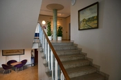 Centralrummene er yderligere markedet i facaden ved fremspring i murværket og afvigelser i vinduesformater. Det gennemgående trapperum får lys gennem et stort glasparti. Byrådssalen markerer sig i facaden med 5 meget høje glaspartier - franske altaner med hvidmalede smedejernsgitter samt 4 skråstillede flagstænger mellem vinduespartierne.