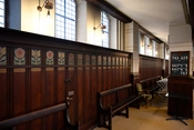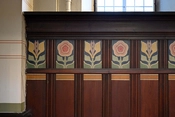Kirkerummet er et stort lyst rum med pulpiturer over sideskibene og de hvidkalkede hvælvinger er udsmykket med mønstrede ribbeborter. I sideskibene er væggene beklædt med brune paneler med påmalede blomsterornamenter.