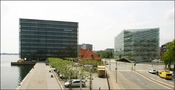 Nykredit har nu bygget på begge side af Kalvebod Brygge. Til venstre Hovedsædet, der blev opført i 2001 og som også er tegnet af Schmidt, Hammer og Lassen. (Se denne) Til højre ses Krystallen.
