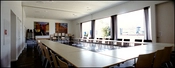 I nordenden findes selskabslokaler, mens sydenden rummer en stor multisal med scene. Værksteder, toiletter mv. findes i kælderniveau.