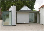 Den oprindelige bygning ses til venstre. Det ottekantede udstillingslokale til højre blev tilføjet af C. F. Møllers tegnestue i 1992.