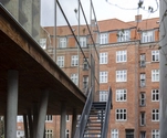 Kvarterhuset er indrettet i en tidligere fabriksbygning fra 1880, og ombygningen var en del af det samlede kvarterløft i området omkring Holmbladsgade.