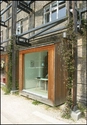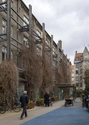 Indgangsfacaden på det nyindrettede kvartershus. For enden af gaden til venstre findes den nyopførte mødesal.