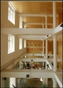 Indtryk fra centerets foyer med et fjernet etagedæk. Til venstre i billedet skimtes arbejdsplads for vagthavende bibliotekar og til høje indgangspartiet.