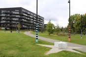 Parken smelter sammen med gårdrummet ved bebyggelsen Hulgårds Have