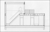 Husene er træklædte trækonstruktioner malet dybt mørkebrune og bygget af præfabrikerede elementer