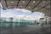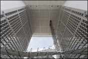 Gigantbygningen ligger midt i den moderne bydel La Defense og holder op imod 4000 kontorarbejdspladser. Den ligger drejet lidt over 6 grader i forhold til den historiske akse startende med det gamle kongehus Louvre, over Concordepladsen og Triumbuen, til denne nye portal