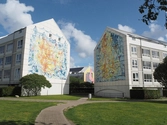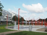 SLA renoverede i 1997 udearealerne med mindre og mere intime rum ad et nyt stisystem, som skærer sig gennem terrænet og som skifter i materiale. Blandt i alt 35 mindre rum finder man lunde af løn og fyr, en krydderihave, en frugthave, spredte grupper af kirsebærtræer og en rulleskøjtebane.