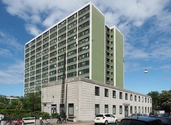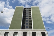 Byggeriet er opført i jernbeton med etageadskillelser i massive betonelementer.