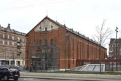 Bygningen er opført af røde mursten på granitsokkel, og taget dækket med skifersten. Facaderne er enkle med to langsider med taktfast anbragte vinduer i smalle rundbuede felter.Gavlene mod Jagtvej og Florsgade er smykket af en pyramideformet dekoration i sandsten.