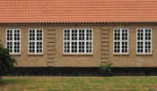 Facaden er velkomponeret med klare geometriske træk og murværksdekorationerne er enkle og afdæmpede. Vinduerne har små rudeformater og er hvidmalet.