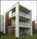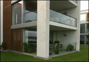 Altanværnene er udført af glas og stål med håndlister af træ. Hermed optimeres udsigten fra lejlighedernes østvendte opholdsareal.