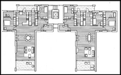 Den lange ryg indeholder kernefunktioner som trapper, elevatorer, badeværelser, køkkener og soverum, mens opholdsrummene er placeret i ’pavillonerne’ mod fjorden. Derved har lejlighederne den samme disponering med mest mulig facade mod vandsiden.