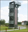 Det 12 meter høje tårn er tænkt som et vartegn, hvis vertikale form bryder udstillingsbygningens og landskabets vandrette linier.