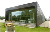 Bygningen er beklædt med zink og træoliebejsede egetræslister.