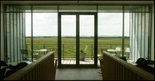 Den storslåede udsigt fra cafeterieat over det flade terræn mod vest.