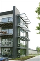 Mod vest domineres plejehjemmet af to parallelle blokke på hver fire etager.