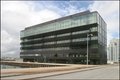 Selve bygningen er en aflang krop med gavlen mod vandet. Facaden er i sort aluminium og glas og indvendigt er huset organsieret med åbne kontormiljøer, der afveksles med store dobbelthøje rum.