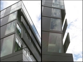 Sort stål og glas karakteriserer de minimalistiske facader.