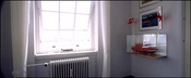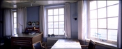 Et indtryk af interiørets oprindelige karakter med sprossede vippevinduer og en skibsmodel.