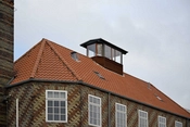 Grundet sin eksponerede beliggenhed er Lodsstationen udført med affasede hjørner og valmtag der passer glimrende til at blive udført i tegl.